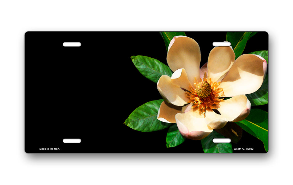 Magnolia on Black Offset License Plate