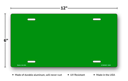 This vanity license plate is 6" x 12" and made from durable, high grade aluminum that will never rust. The imagery is printed in high resolution on a glossy finish and is both UV and weather resistant. It includes four pre-drilled automotive standard holes to place it on your vehicle, but it will look just as great as a decoration on a wall or on a license plate stand.
