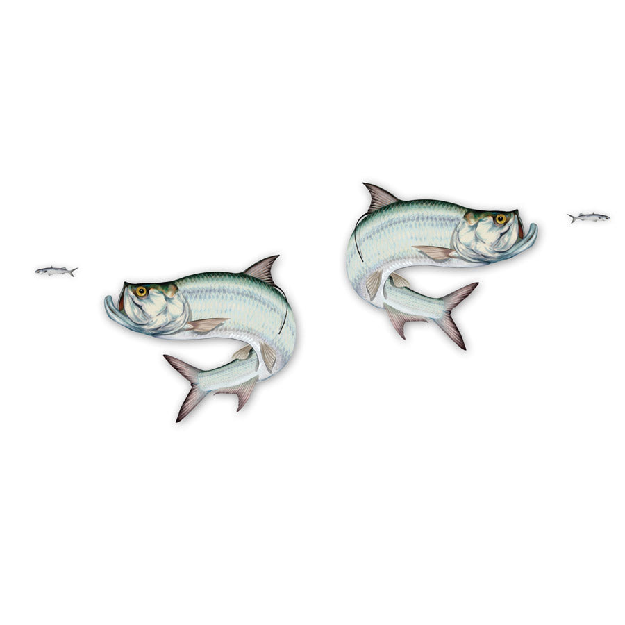 This Salty Bones Tarpon mega decal double pack includes: (1) right facing Tarpon decal, (1) left facing Tarpon decal, and (2) bait fish decals. Each of these stickers feature original Salty Bones art printed in high resolution on high-tack vinyl. This means the imagery will look great on any clean, flat surface regardless of its color. Every Salty Bones sticker is 100% American made - all of our stickers are designed, printed and packed at our facility in Cocoa, Florida.